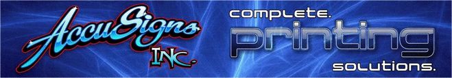 In business for over 25 years, at AccuSigns, we are passionate about creating unique and high-quality t-shirts and signs that make our customers stand out. We print shirts and all textiles, along with signs, banners and promotional products. We offer embroidery and business card printing as well. We are a fully automated print shop.